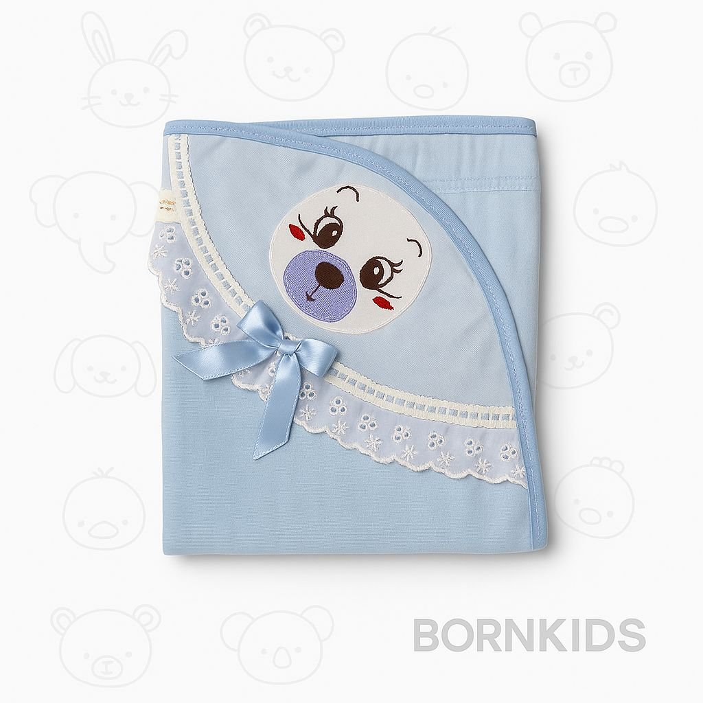 Toalha Fralda Carinha Bordada Azul Claro